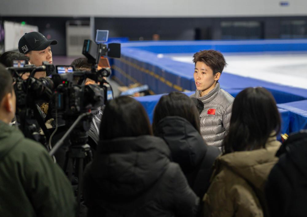 1月21日,中國(guó)短道速滑國(guó)家集訓(xùn)隊(duì)隊(duì)員孫龍接受媒體采訪。新華社記者 孫非 攝
