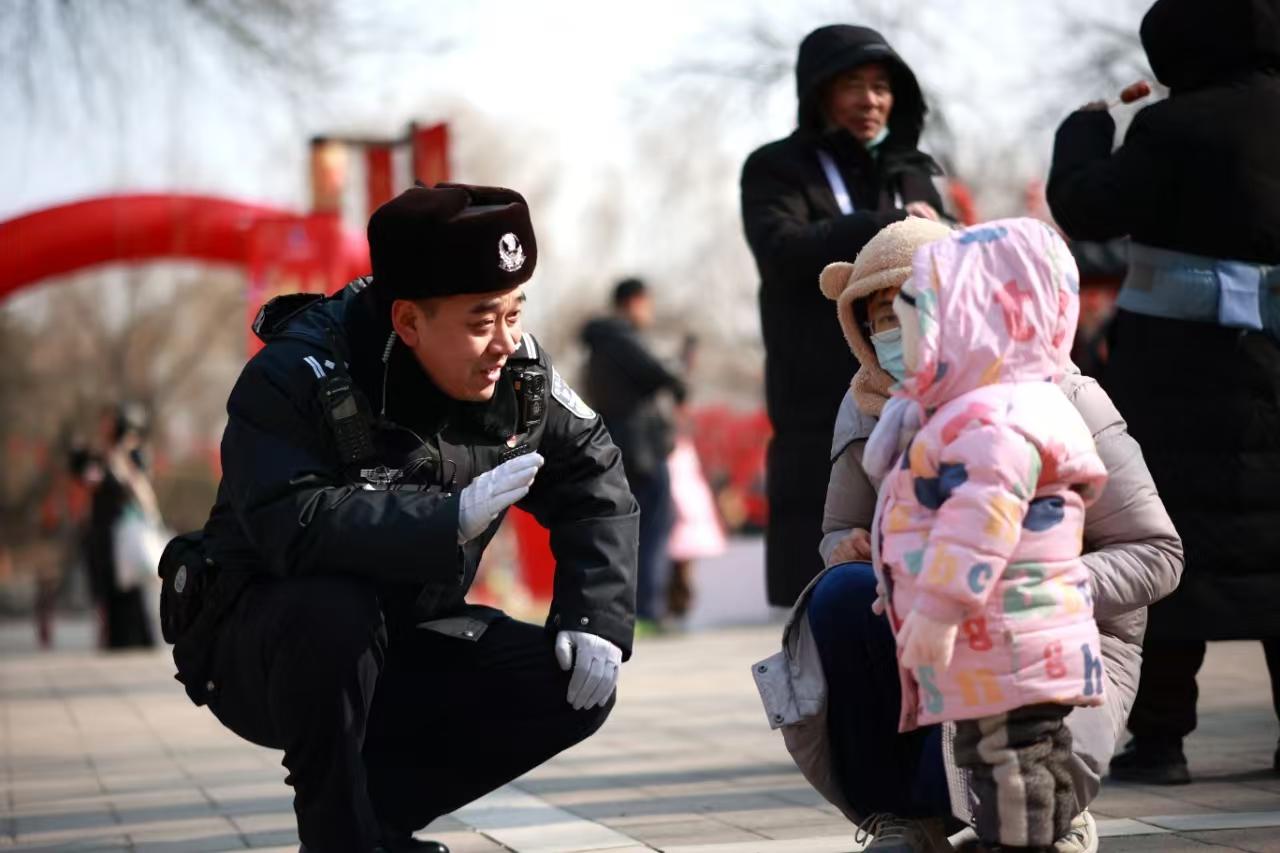 今年圓明園廟會將傳統(tǒng)年味、非遺文化、數(shù)字科技、冰雪運動集于一體,前來打卡的游客絡(luò)繹不絕,海淀民警時刻緊繃安全這根弦,為游客提供身邊的暖心服務(wù)。