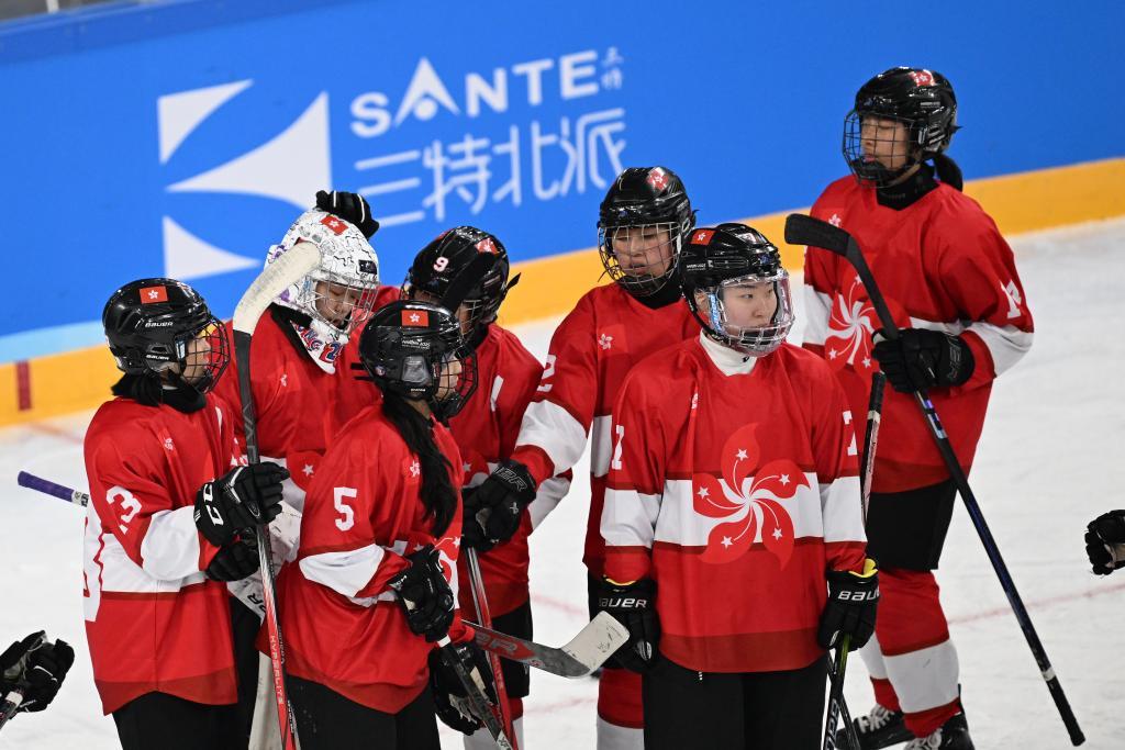 2月3日,中國香港冰球女隊(duì)球員在比賽結(jié)束后。新華社記者 陳振海 攝
