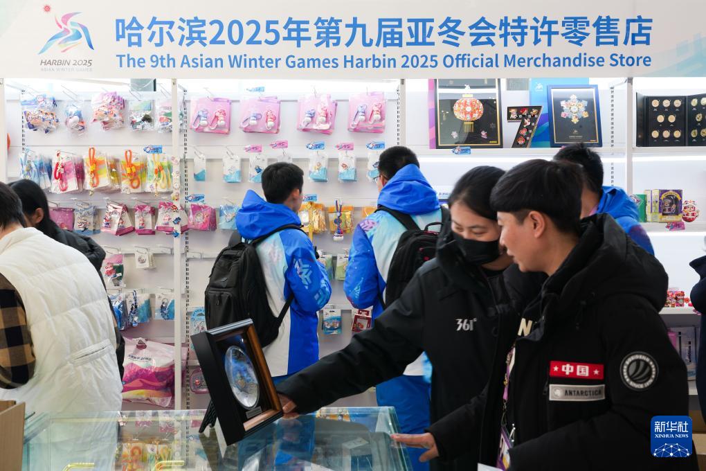 2月5日,人們在主新聞中心內(nèi)的亞冬會特許商品零售店選購紀(jì)念品。