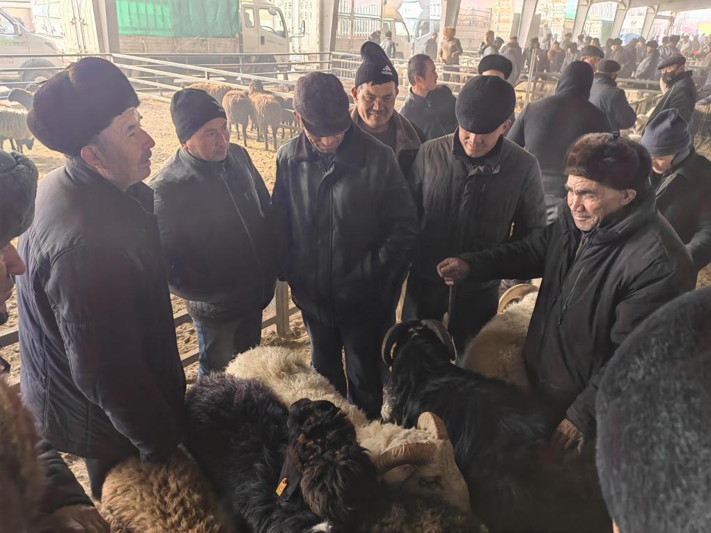 1月5日,在新疆喀什市牛羊大巴扎,買賣雙方正在討價還價。新華社記者蔡國棟 攝