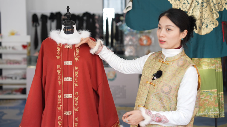 曹縣洛如嫣原創(chuàng)漢服負(fù)責(zé)人展示蛇年新款拜年服