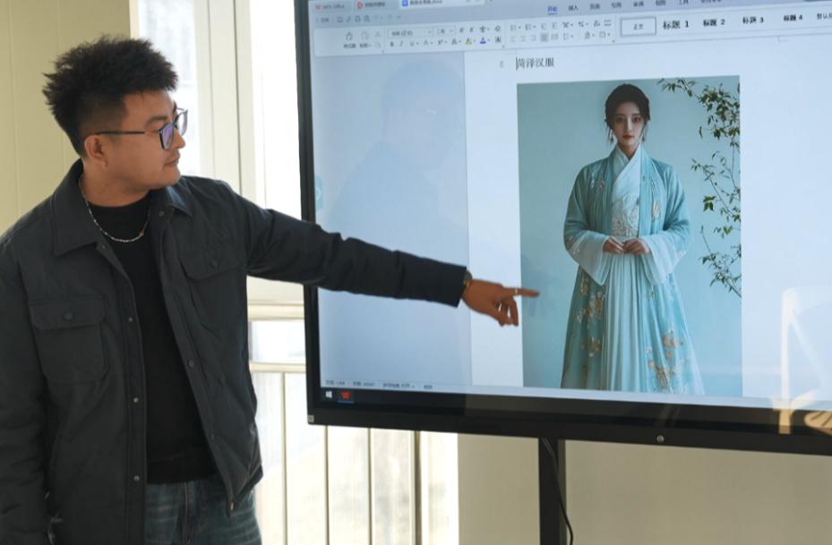 工作人員介紹人工智能設(shè)計(jì)漢服的案例