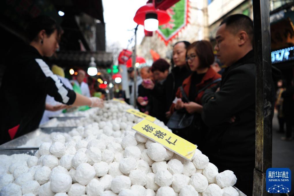 2019年2月19日,在新疆烏魯木齊大巴扎步行街,市民和游客品嘗元宵。新華社記者 王菲 攝