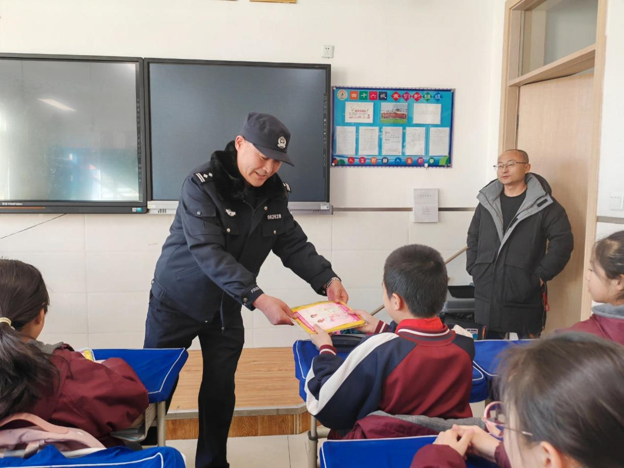 圖為白殿華同志在線路周邊學校開展愛路護路宣傳。(太原鐵路公安局大同公安處大同站派出所供圖)