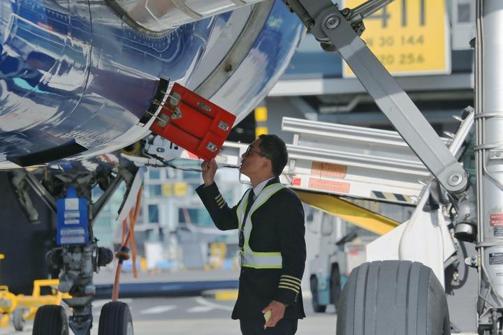 圖為黃敏正在做飛行前的檢查。(受訪者供圖)
