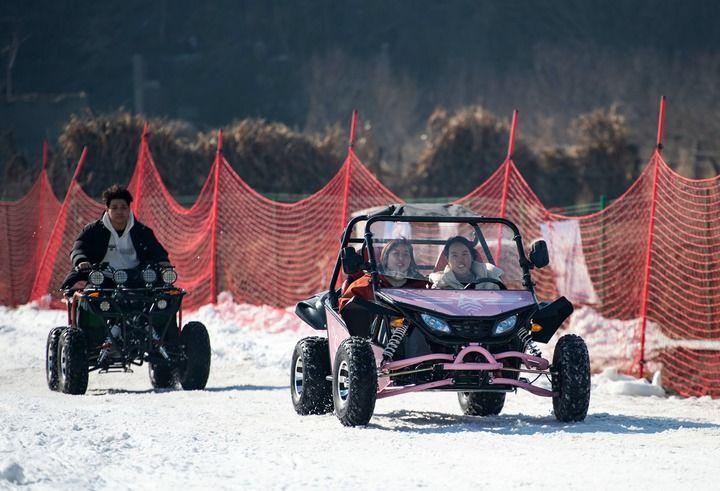 2025年1月19日,在河北省邯鄲市復興區(qū)東高河村滑雪場,游客在體驗雪地越野車項目。新華社記者 王曉 攝
