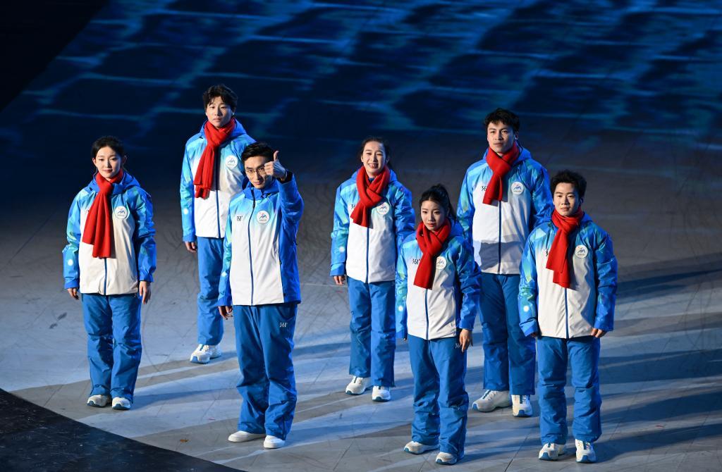 2月14日,各體育代表團在閉幕式上入場。新華社記者 張濤 攝