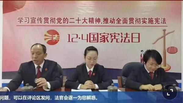 直播互動,深入服務(wù)群眾。為充分發(fā)揮新媒體傳播快、關(guān)注度高、互動性好的特點,黔南中院在新媒體平臺進(jìn)行庭審直播,讓群眾在觀看直播中學(xué)習(xí)法律知識,截至目前,通過直播庭審方式普法已達(dá)4億人次;連續(xù)兩年,在國家憲法日宣傳中,邀請法官走進(jìn)直播間釋法、解答群眾法律咨詢,近20萬人次在線觀看。