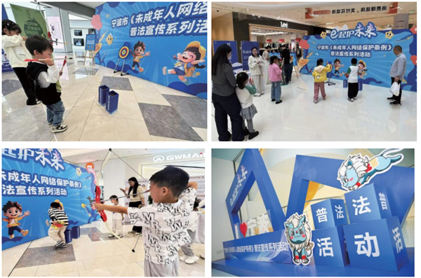 契合未成年人心理需求,重點強化參與性和互動性。線下活動中,現(xiàn)場布置主題打卡框,搭建趣味主題小游戲區(qū)域,設(shè)置簽名墻邀請未成年人及家長簽名留念,制作未成年人網(wǎng)絡(luò)保護標(biāo)語海報,營造熱烈喜慶的良好氛圍。搭建起互動舞臺,通過射箭互動—擊碎網(wǎng)絡(luò)不良信息、投壺互動—提高自身網(wǎng)絡(luò)素養(yǎng)、套圈互動—向網(wǎng)絡(luò)沉迷說不等多種生動有趣的互動游戲,激發(fā)未成年人參與熱情,寓教于樂讓未成年人學(xué)習(xí)掌握《條例》要點。在線上平臺,制作上線了普法宣傳主題視頻、普法四格漫畫、普法知識問答、對“不良信息”說NO——網(wǎng)絡(luò)普法小游戲等多種形式的普法宣傳,將《條例》的相關(guān)條款進行了詳細(xì)的解讀和宣傳,重點突出了未成年人網(wǎng)絡(luò)素養(yǎng)提升、網(wǎng)絡(luò)信息內(nèi)容規(guī)范、個人信息網(wǎng)絡(luò)保護、網(wǎng)絡(luò)沉迷防治等關(guān)鍵內(nèi)容。
