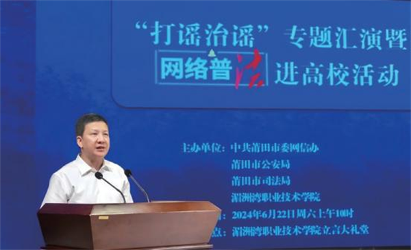 在莆田市委網(wǎng)信辦、市公安局指導(dǎo)下,由莆仙戲劇院團(tuán)隊(duì)創(chuàng)作并演繹莆仙小戲《小五哥破謠記》,通過莆田民間傳奇人物小五哥,重新演繹了打謠治謠的傳奇故事,將國家級非遺莆仙戲和網(wǎng)絡(luò)普法巧妙融合,警醒網(wǎng)民“互聯(lián)網(wǎng)不是法外之地”,極具普法教育意義和莆仙文化價(jià)值。在2024年網(wǎng)絡(luò)普法進(jìn)高校、進(jìn)戲臺(tái)活動(dòng)中,獲得了廣大學(xué)生、群眾的一致好評。