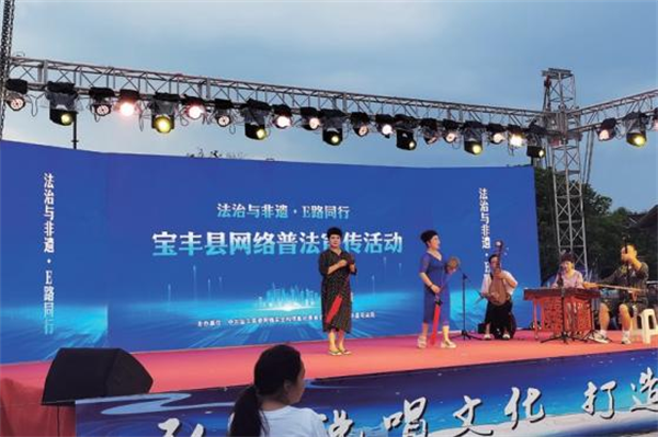 河南省平頂山市寶豐縣文化遺產(chǎn)和文化資源豐厚,尤其是說唱文化、魔術(shù)文化已經(jīng)融入寶豐民眾的日常生活,成為影響當(dāng)?shù)孛癖娋窈蜕畹囊环N獨特的文化實踐活動。寶豐縣結(jié)合實際,加強全局性謀劃、整體性推進,開展“法治與非遺E路同行”網(wǎng)絡(luò)普法宣傳活動,利用全縣特色文化資源優(yōu)勢創(chuàng)作優(yōu)質(zhì)內(nèi)容,用好線上線下“兩種方式”,豐富活動內(nèi)容,推動全縣網(wǎng)絡(luò)普法提質(zhì)增效。注重利用互聯(lián)網(wǎng)“賦能增效”作用,用好網(wǎng)絡(luò)開展學(xué)習(xí)、宣傳,實現(xiàn)線下活動、線上普法和線上宣傳相結(jié)合,實現(xiàn)網(wǎng)絡(luò)普法宣傳接地氣、有人氣、記得住、用得上,讓網(wǎng)絡(luò)普法宣傳走到群眾身邊、走進群眾心里。