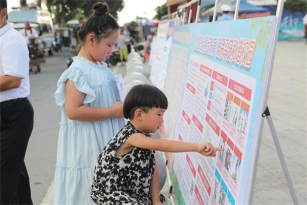 普法活動現(xiàn)場,校園安全展板內(nèi)容吸引小朋友閱讀