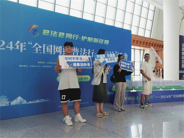 一是加強(qiáng)整體謀劃?!疤柮}”受眾所需,“靶向”制定中老鐵路沿線站點(diǎn)網(wǎng)絡(luò)普法總體方案,協(xié)同昆明、玉溪、普洱、西雙版納沿線站點(diǎn)結(jié)合自身實(shí)際,擬定氛圍營造子方案,形成中老鐵路沿線網(wǎng)絡(luò)普法工作合力。二是開展線下普法。以普法專列發(fā)車儀式為帶動(dòng),以沿線站點(diǎn)候車廳、站前廣場為重點(diǎn),以大屏小屏互動(dòng)、普法展板宣傳、網(wǎng)絡(luò)普法打卡、民族歌舞唱演等多樣形式開展網(wǎng)絡(luò)普法,提升“面對面”普法實(shí)效。其中,昆明南站設(shè)置網(wǎng)絡(luò)普法打卡裝置,吸引旅客打卡、拍照學(xué)法;普洱站利用進(jìn)出站口電子大屏滾動(dòng)播放《守護(hù)》《防范非法集資之快樂拉祜》等原創(chuàng)網(wǎng)絡(luò)普法短視頻和《網(wǎng)絡(luò)暴力何時(shí)休?法律為你來撐腰》等網(wǎng)絡(luò)普法動(dòng)畫,營造“e路有法命運(yùn)與共”的濃厚網(wǎng)絡(luò)普法氛圍;西雙版納州委網(wǎng)信辦組織檢察、公安、司法等在站前廣場設(shè)置宣傳展板區(qū)、文創(chuàng)展示區(qū),組織普法志愿者開展憲法、民法典、禁毒、反詐、交通安全等主題普法宣傳,融入生活場景的“親民”普法模式,有效提升普法向心力。