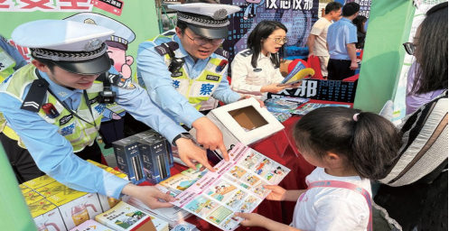 網(wǎng)絡普法“輕騎兵”在市民公園發(fā)放普法漫畫、普法繪本等宣傳資料