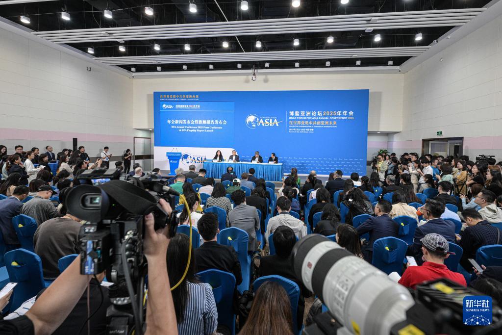 3月25日在海南博鰲拍攝的博鰲亞洲論壇2025年年會新聞發(fā)布會暨旗艦報告發(fā)布會現(xiàn)場。
