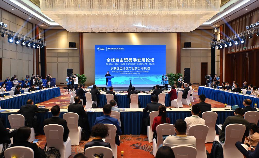 2022年4月21日,博鰲亞洲論壇2022年年會舉行“全球自由貿易港發(fā)展論壇”。與會嘉賓就如何提升自由區(qū)(港)的國際競爭力等話題展開交流。新華社記者 郭程 攝