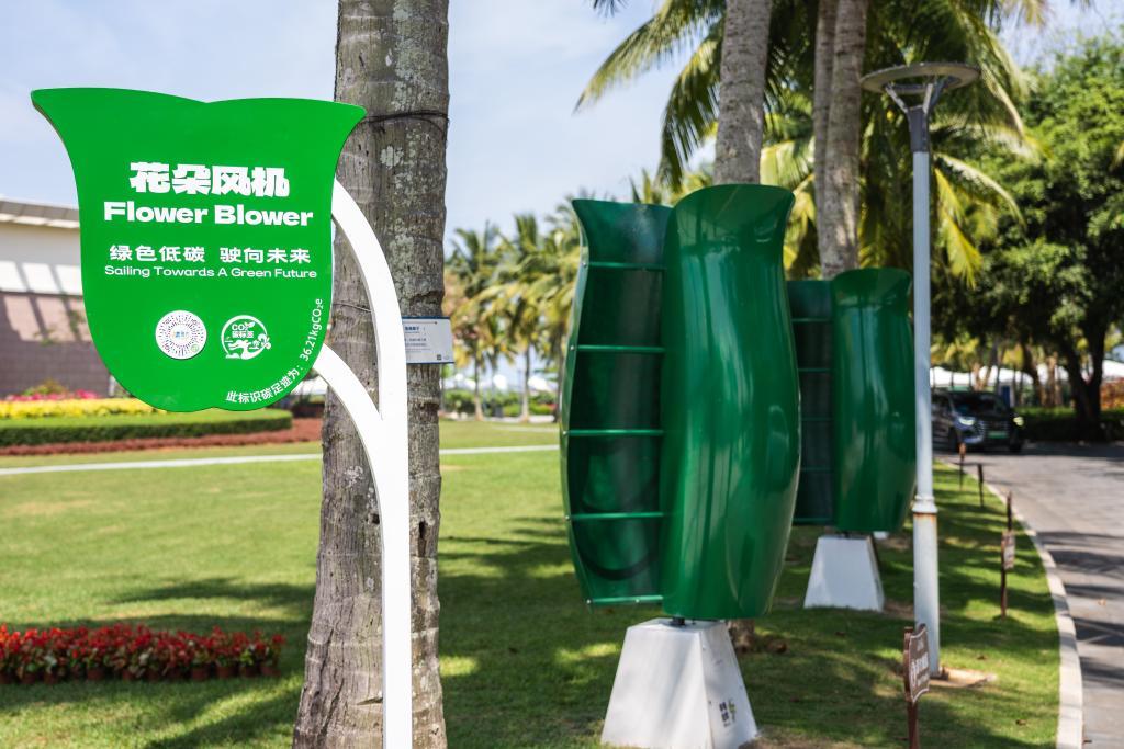 這是2024年3月27日拍攝的博鰲近零碳示范區(qū)內的花朵風機?;ǘ滹L機用來收集風能,是島內可再生能源利用項目之一。新華社記者 曹夢瑤 攝