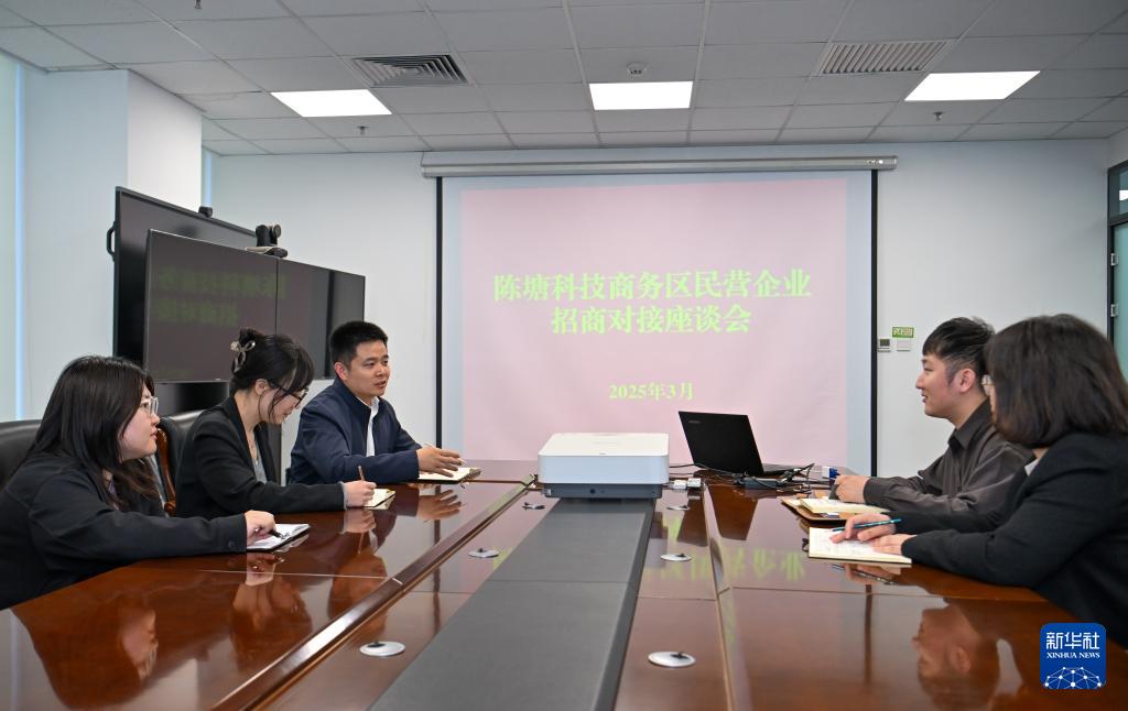 3月28日,在天津陳塘科技商務(wù)區(qū)管理委員會(huì),工作人員就商務(wù)區(qū)招商工作進(jìn)行討論。