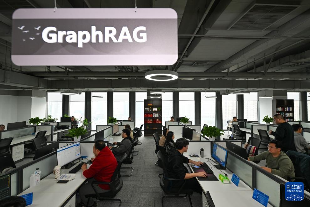在天津陳塘科技商務(wù)區(qū)天津匯智星源科技有限公司,工程師基于大模型完善GraphRAG智能圖譜系統(tǒng)(3月26日攝)。