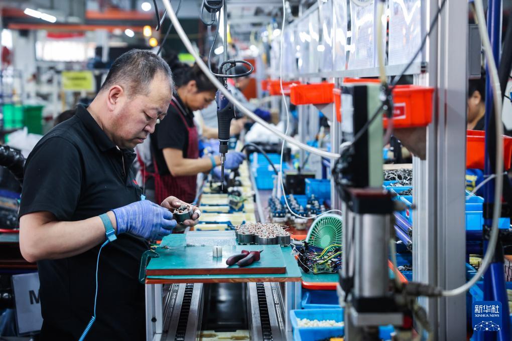 3月26日,在位于嘉興南湖區(qū)余新鎮(zhèn)的浙江亞特電器股份有限公司生產(chǎn)車間,工作人員對出口的園林工具進行組裝。