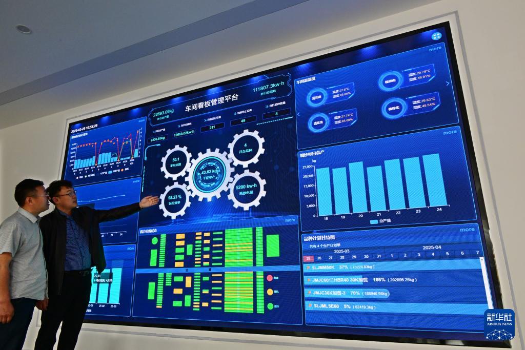 ??在即墨區(qū)龍山街道一家服裝企業(yè)的車間看板管理平臺,工作人員在實時查看相關(guān)數(shù)據(jù)(3月25日攝)。