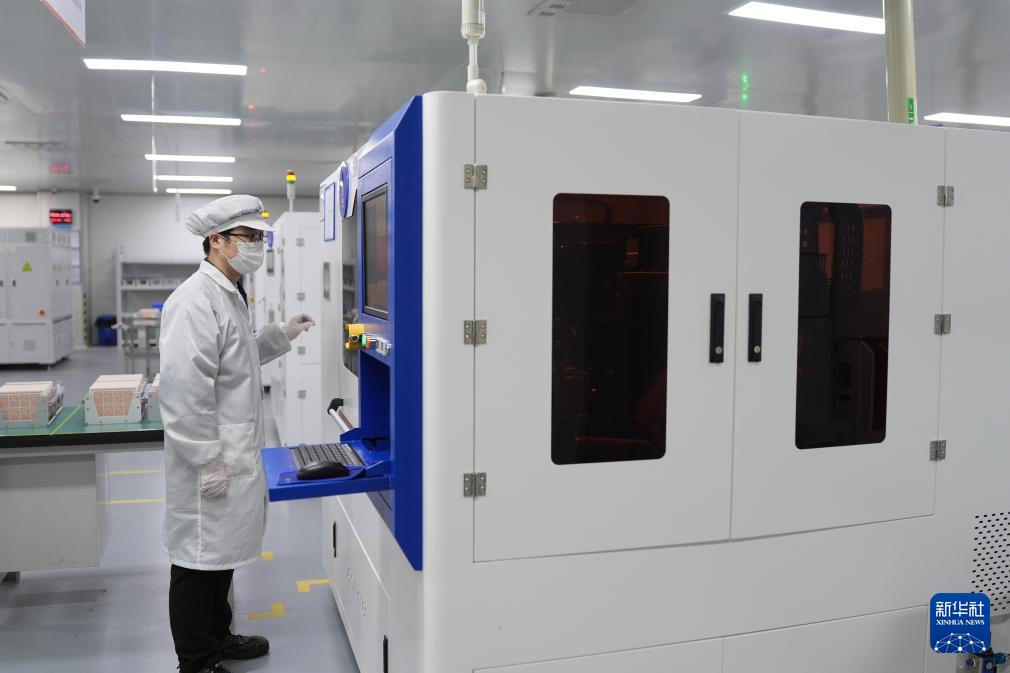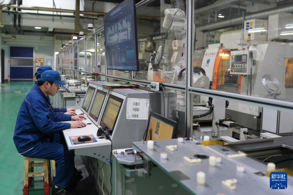 寧波江豐電子材料股份有限公司技術(shù)人員在智能產(chǎn)線作業(yè)(3月20日攝)。