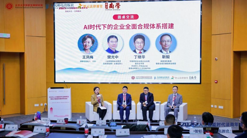 第二場圓桌交流以“AI時代下的企業(yè)全面合規(guī)體系建設(shè)”為議題,由律新社創(chuàng)始人、CEO王鳳梅主持,《合規(guī)管理體系要求及使用指南》主要起草人之一樊光中、中國貿(mào)促會全國企業(yè)合規(guī)委員會專家丁繼華以及泰康保險集團(tuán)管委會成員兼首席合規(guī)官靳毅等嘉賓參與討論。嘉賓們對企業(yè)在AI時代構(gòu)建全面合規(guī)體系提出了具體建議:樊光中呼吁企業(yè)通過AI技術(shù)優(yōu)化合規(guī)管理流程;丁繼華建議加強合規(guī)文化建設(shè);靳毅則強調(diào)了復(fù)合型人才培養(yǎng)的重要性。