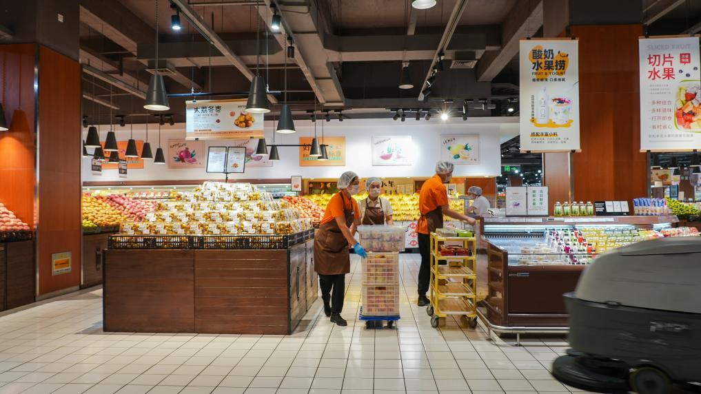 在河南許昌的胖東來生活廣場(chǎng)店內(nèi),店員正在做當(dāng)天開業(yè)前的準(zhǔn)備工作。新華社記者 劉振坤 攝
