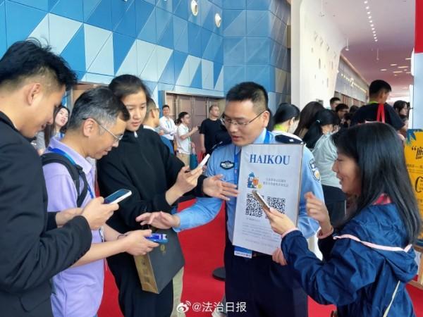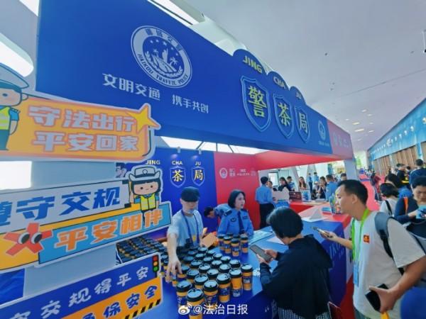 在第五屆中國國際消費品博覽會上,海南??诰降摹熬琛帧惫嫘麄髡箙^(qū)格外引人注目。在現(xiàn)場,只要參與交通安全知識問答、禁毒知識問答等普法活動,就可品嘗到印有文明交通標語的免費茶飲,收獲交警小熊、??诮竟械榷Y品,不少國內(nèi)外參展客商、市民游客融入其中,現(xiàn)場氛圍十分活躍。除此之外,現(xiàn)場還可觀摩仿真毒品模型、與民警面對面交流,深入了解法律知識,提高安全防范意識。創(chuàng)新宣傳,寓教于樂,這場盛會也因警方這樣的貼心守護更顯生動。
