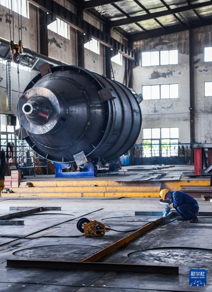 4月9日,在位于慈溪的國家專精特新“小巨人”企業(yè)寧波太極環(huán)保設(shè)備有限公司車間內(nèi),工人在生產(chǎn)、組裝銷往東南亞的環(huán)保設(shè)備。
