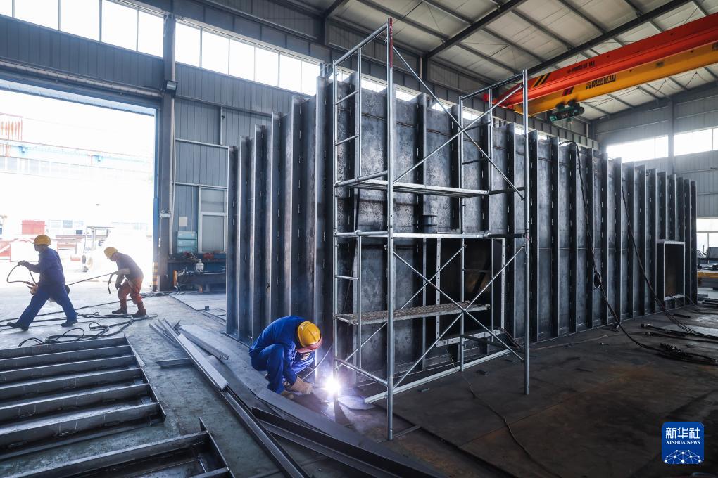 4月9日,在位于慈溪的國家專精特新“小巨人”企業(yè)寧波太極環(huán)保設(shè)備有限公司車間內(nèi),工人在生產(chǎn)、組裝銷往東南亞的環(huán)保設(shè)備。