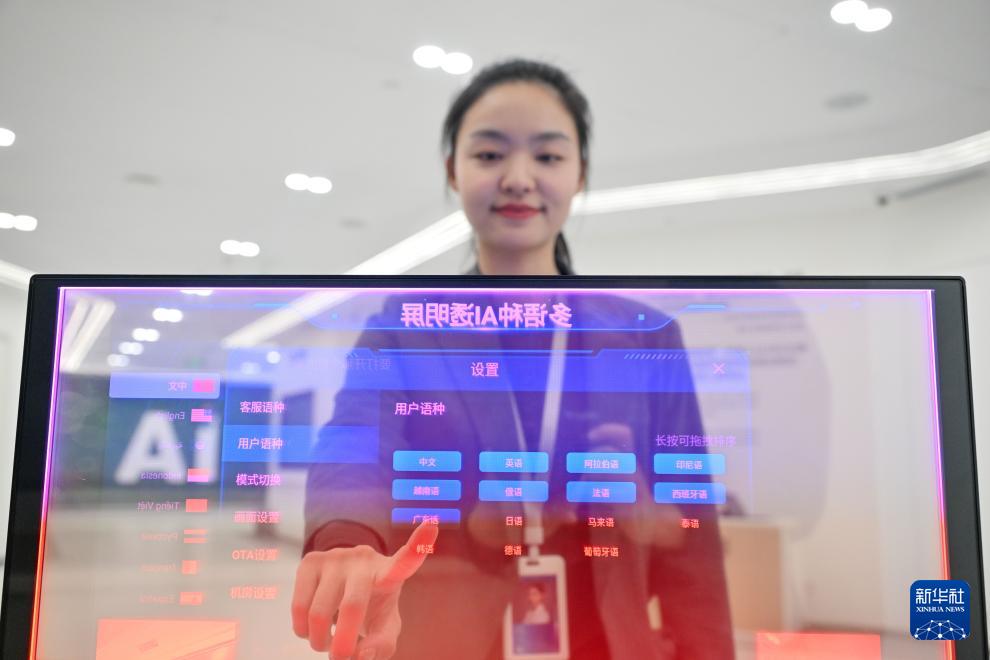 在科大訊飛天津公司,工作人員演示多語種AI透明屏實時翻譯系統(tǒng)(4月18日攝)。
