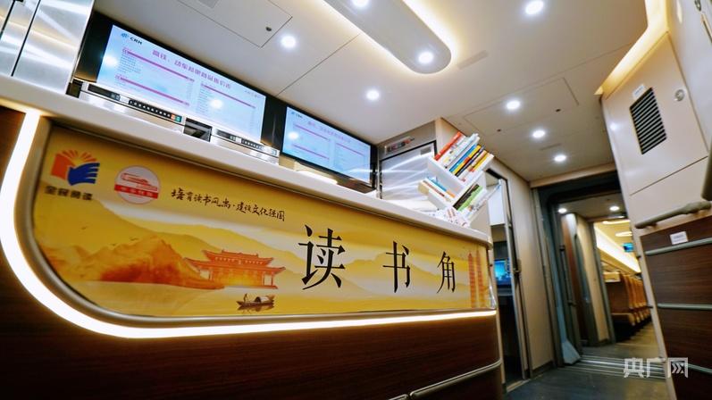 高鐵列車餐吧臺(tái)“讀書角”(央廣網(wǎng)發(fā) 賈寧 攝)