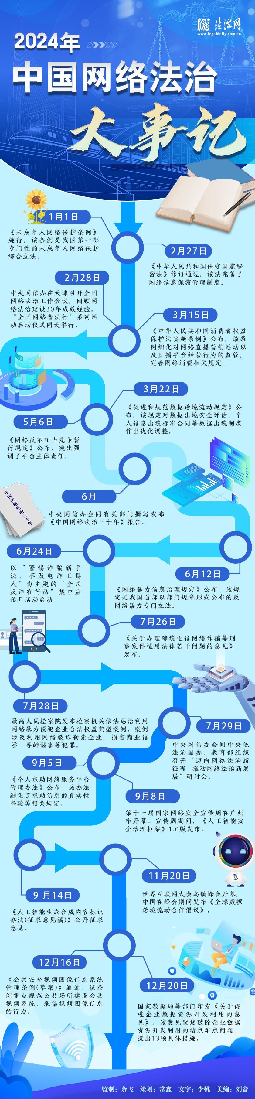 4月27日,國家互聯(lián)網(wǎng)信息辦公室發(fā)布《中國網(wǎng)絡(luò)法治發(fā)展報告(2024年)》。這是首部國家部門層面發(fā)布的網(wǎng)絡(luò)法治綜合性年度報告,既是《中國網(wǎng)絡(luò)法治三十年》報告的續(xù)篇,也是中國網(wǎng)絡(luò)法治發(fā)展年度報告的開篇。讓我們從這一年的大事記中,了解我國2024年網(wǎng)絡(luò)法治的發(fā)展歷程。