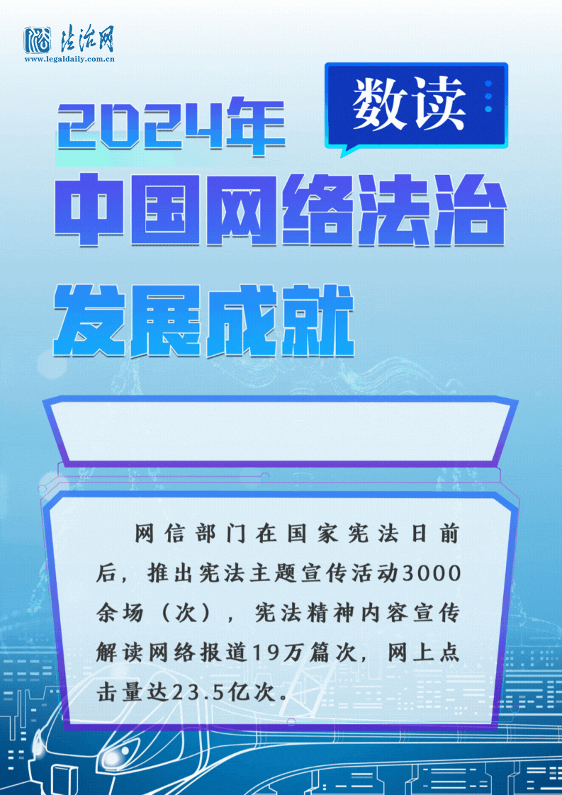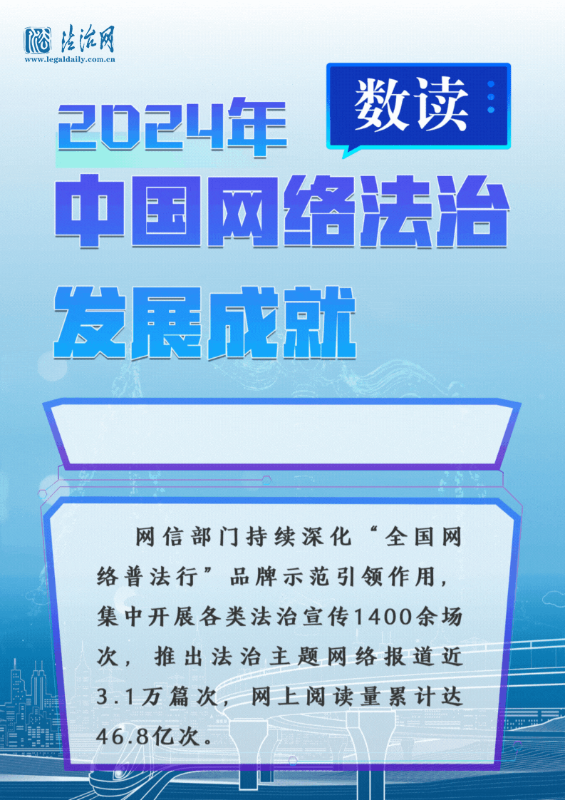 4月27日,國家互聯(lián)網(wǎng)信息辦公室發(fā)布《中國網(wǎng)絡(luò)法治發(fā)展報告(2024年)》。這是首部國家部門層面發(fā)布的網(wǎng)絡(luò)法治綜合性年度報告,既是《中國網(wǎng)絡(luò)法治三十年》報告的續(xù)篇,也是中國網(wǎng)絡(luò)法治發(fā)展年度報告的開篇。讓我們用一組數(shù)據(jù)帶你看我國網(wǎng)絡(luò)法治建設(shè)這一年的成就,感受網(wǎng)絡(luò)法治建設(shè)邁出的堅實步伐。