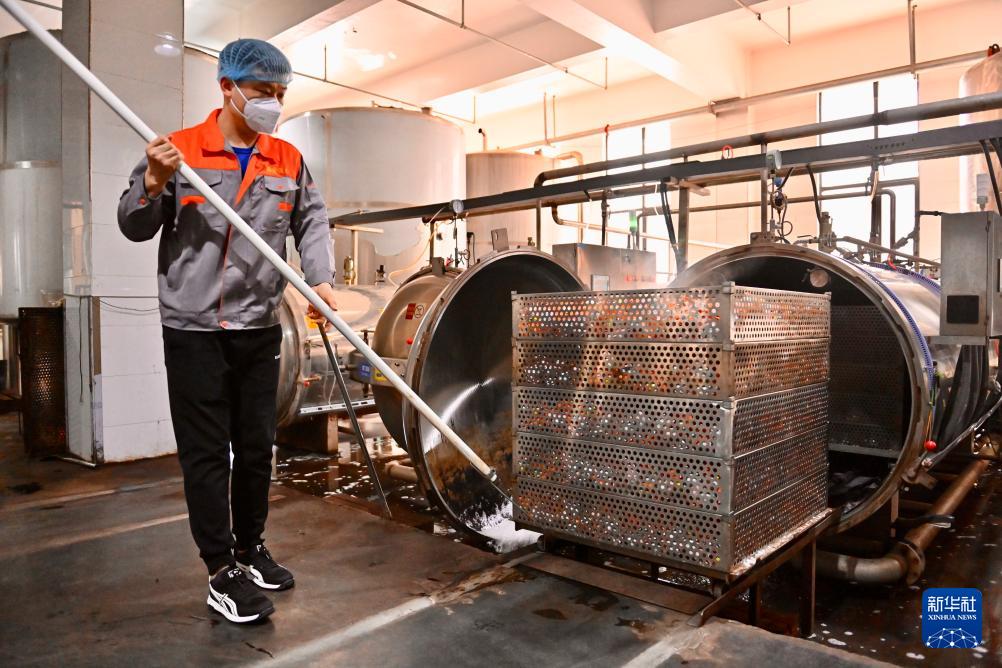 4月24日,在位于遼陽市的遼寧鑫金科技實(shí)業(yè)集團(tuán)有限公司的加工廠內(nèi),工人在查看煮熟的鴨蛋。