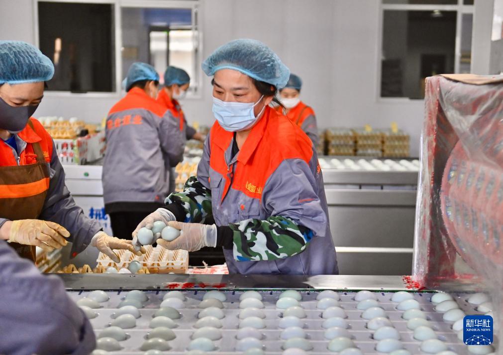 4月24日,在位于遼陽(yáng)市的遼寧鑫金科技實(shí)業(yè)集團(tuán)有限公司的加工廠內(nèi),工人將鴨蛋碼放到生產(chǎn)線上。