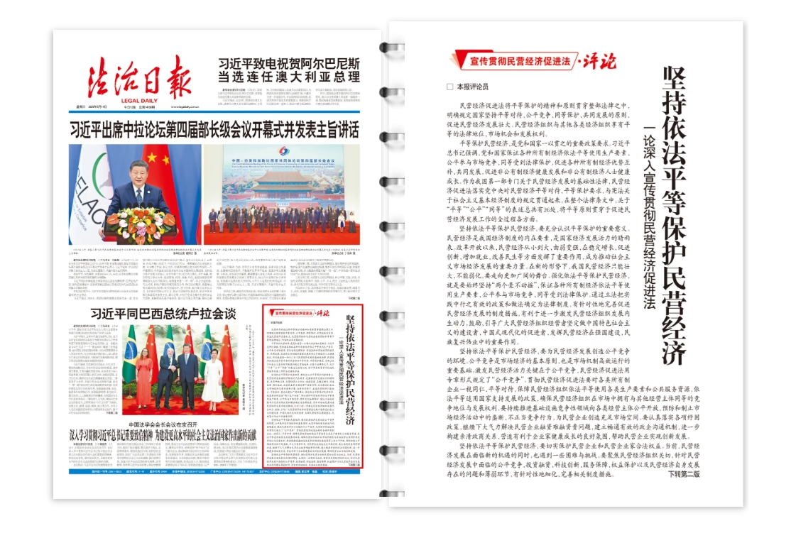 平等保護民營經(jīng)濟,是黨和國家一以貫之的重要政策要求。習(xí)近平總書記強調(diào),黨和國家保證各種所有制經(jīng)濟依法平等使用生產(chǎn)要素、公平參與市場競爭、同等受到法律保護,促進各種所有制經(jīng)濟優(yōu)勢互補、共同發(fā)展,促進非公有制經(jīng)濟健康發(fā)展和非公有制經(jīng)濟人士健康成長。作為我國第一部專門關(guān)于民營經(jīng)濟發(fā)展的基礎(chǔ)性法律,民營經(jīng)濟促進法落實黨中央對民營經(jīng)濟平等對待、平等保護要求,與憲法關(guān)于社會主義基本經(jīng)濟制度的規(guī)定貫通起來,在整個法律條文中,關(guān)于“平等”“公平”“同等”的表述總共有26處,將平等原則貫穿于促進民營經(jīng)濟發(fā)展工作的全過程各方面。