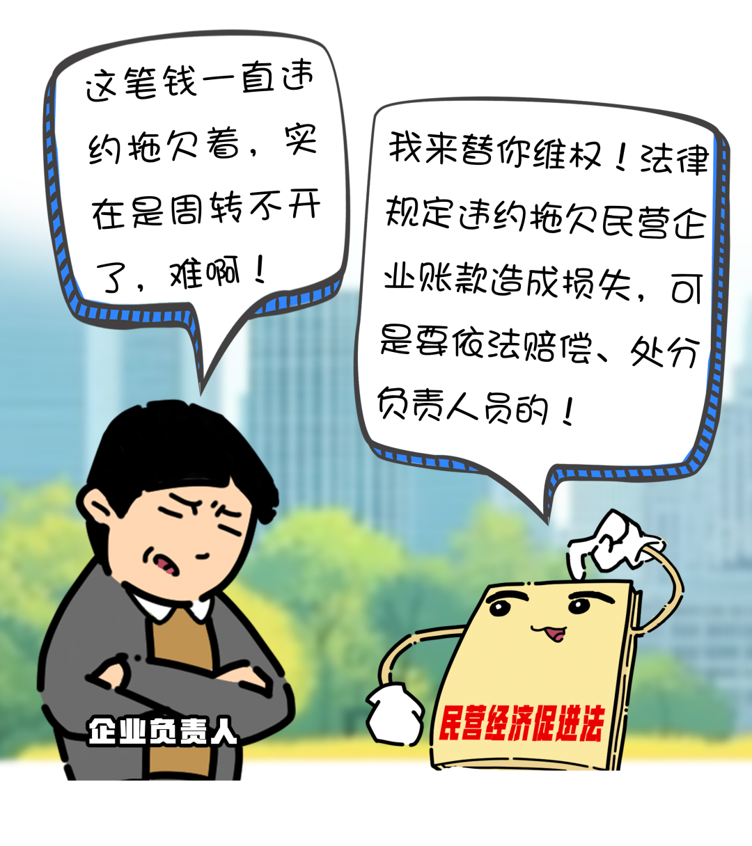 第七十三條 國家機(jī)關(guān)、事業(yè)單位、國有企業(yè)違反法律、行政法規(guī)規(guī)定或者合同約定,拒絕或者拖延支付民營經(jīng)濟(jì)組織賬款,地方各級(jí)人民政府及其有關(guān)部門不履行向民營經(jīng)濟(jì)組織依法作出的政策承諾、依法訂立的合同的,由有權(quán)機(jī)關(guān)予以糾正,造成損失的,依法予以賠償;造成不良后果或者影響的,對(duì)負(fù)有責(zé)任的領(lǐng)導(dǎo)人員和直接責(zé)任人員依法給予處分。