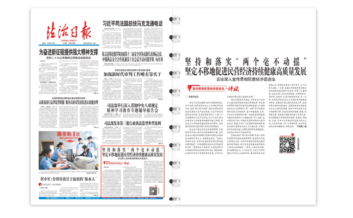 制定民營(yíng)經(jīng)濟(jì)促進(jìn)法,與憲法關(guān)于社會(huì)主義基本經(jīng)濟(jì)制度的規(guī)定貫通起來,將支持和保障民營(yíng)經(jīng)濟(jì)發(fā)展的法律制度融入中國特色社會(huì)主義法律體系,第一次將“毫不動(dòng)搖鞏固和發(fā)展公有制經(jīng)濟(jì),毫不動(dòng)搖鼓勵(lì)、支持、引導(dǎo)非公有制經(jīng)濟(jì)發(fā)展”“促進(jìn)民營(yíng)經(jīng)濟(jì)健康發(fā)展和民營(yíng)經(jīng)濟(jì)人士健康成長(zhǎng)”寫入法律。這必將有利于進(jìn)一步激發(fā)民營(yíng)經(jīng)濟(jì)組織發(fā)展內(nèi)生動(dòng)力,鼓勵(lì)、引導(dǎo)廣大民營(yíng)經(jīng)濟(jì)組織經(jīng)營(yíng)者堅(jiān)定做中國特色社會(huì)主義的建設(shè)者、中國式現(xiàn)代化的促進(jìn)者,發(fā)揮民營(yíng)經(jīng)濟(jì)在強(qiáng)國建設(shè)、民族復(fù)興偉業(yè)中的重要作用。