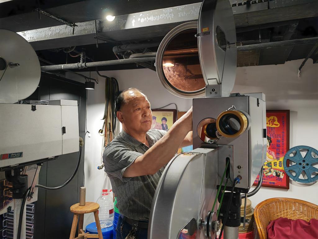 在光影瑯琊·中國百年電影文化體驗館,館長鞏西吉正在調(diào)試老式電影放映機。新華社記者劉錚 攝