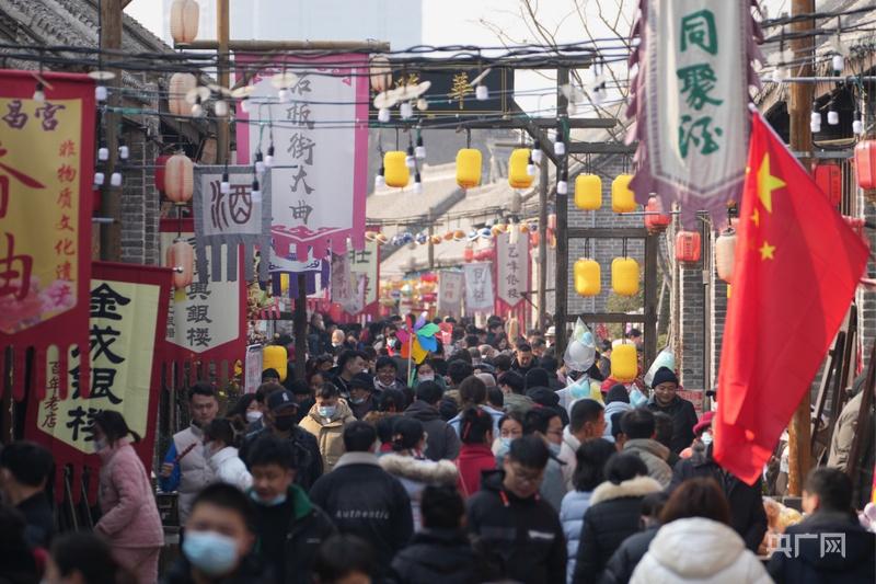 春節(jié)假期濉溪古城內(nèi)絡(luò)繹不絕的游客(央廣網(wǎng)記者 徐鵬 攝)