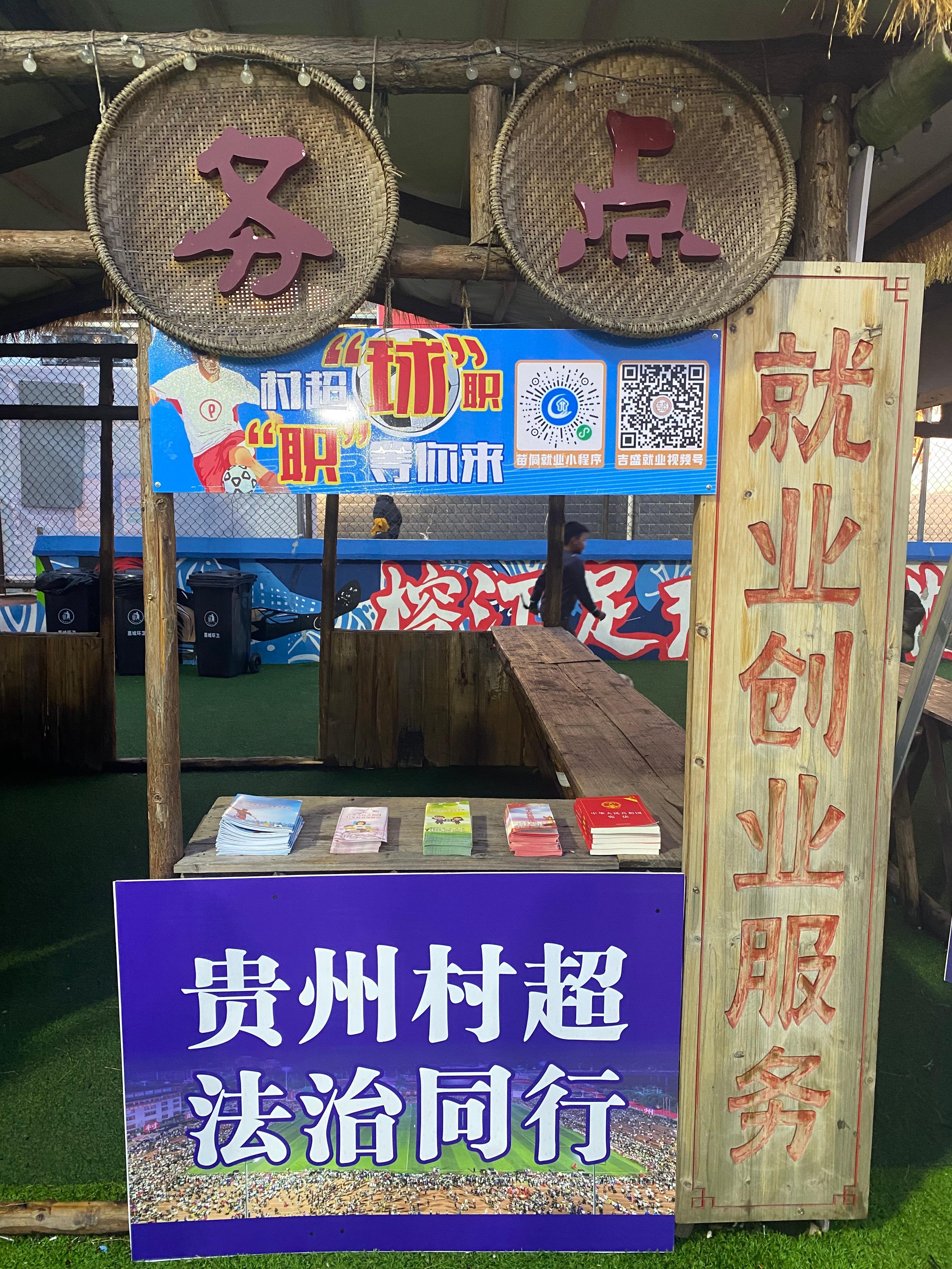 圖為“村超”普法現(xiàn)場,展示了各種法治宣傳手冊。(任銳 邢國涵攝)