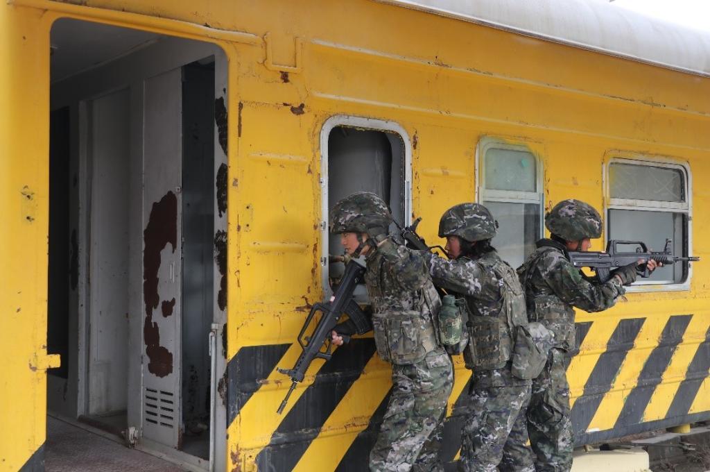 ↑達(dá)娃卓嘎(右一)和戰(zhàn)友進(jìn)行戰(zhàn)術(shù)訓(xùn)練