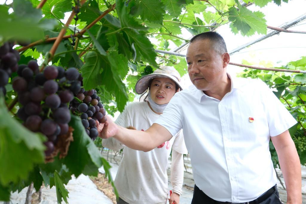 7月1日,李永偉(右)陳桃群(左)在檢看葡萄。新華社記者 張雅雯 攝