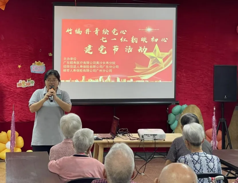 為熱烈慶祝中國共產(chǎn)黨建黨104周年,弘揚尊老敬老傳統(tǒng)美德,踐行金融為民初心,7月1日下午,橫琴人壽廣州黨支部及廣州分公司,聯(lián)合公益合作伙伴招商信諾廣東分公司,共同走進(jìn)頤壽安養(yǎng)養(yǎng)老院,開展了一場主題鮮明、情意濃濃的“竹編丹青繪黨心,七一紅韻映初心”建黨紀(jì)念日主題活動暨“7.8全國保險公眾宣傳日”活動,以公益服務(wù)與紅色教育相結(jié)合的特殊方式為黨的生日獻(xiàn)禮。