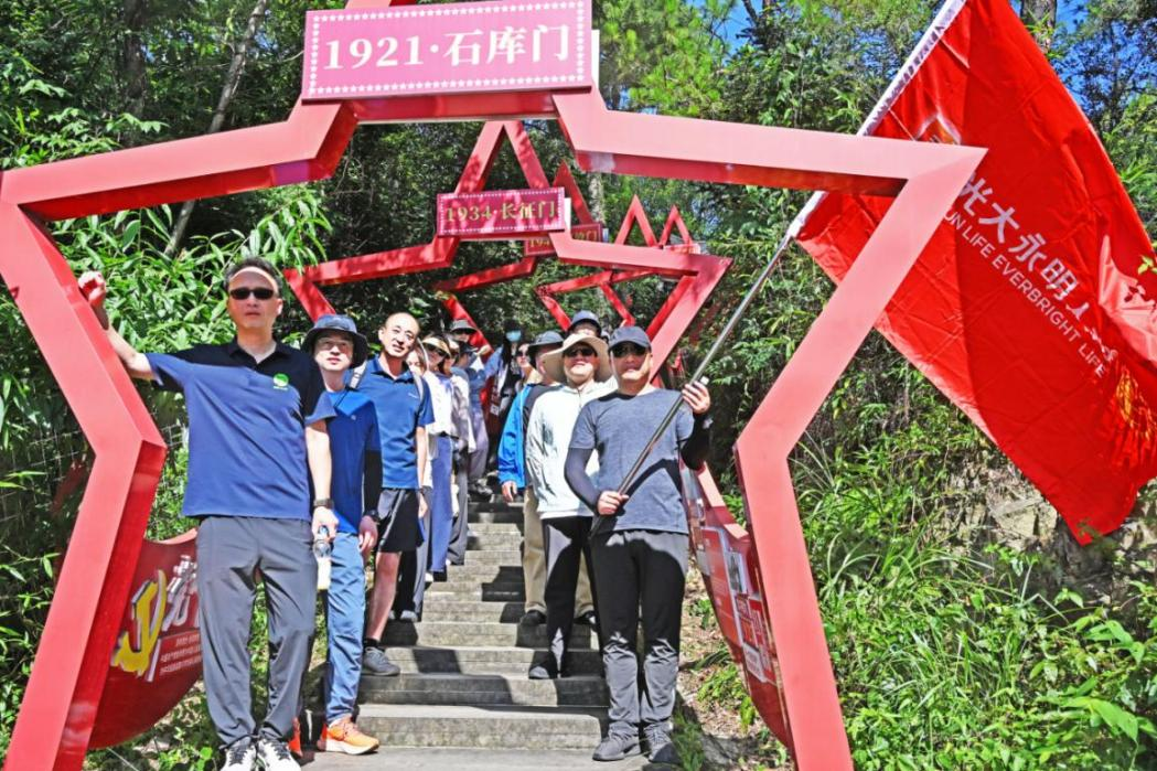7月5日,在“7.8全國(guó)保險(xiǎn)公眾宣傳日”來臨之際,光大永明人壽寧波分公司組織全體員工在東錢湖鎮(zhèn)高錢村新時(shí)代紅色黨建公園開展紅色傳承健步走活動(dòng)。