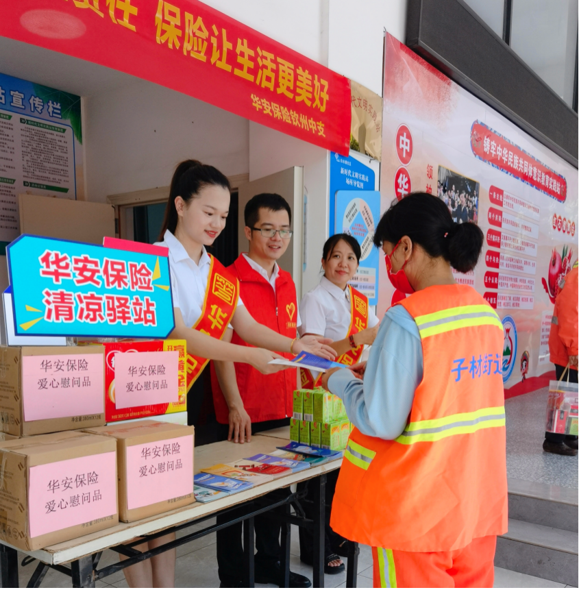 在廣西欽州白水塘社區(qū),華安保險(xiǎn)的工作人員在開(kāi)展“清涼驛站”活動(dòng)慰問(wèn)環(huán)衛(wèi)工人的同時(shí),也向往來(lái)群眾開(kāi)展防范非法金融活動(dòng)宣傳;界首支公司在職場(chǎng)外設(shè)置了“清涼驛站”,連續(xù)多日為環(huán)衛(wèi)工人送上飲品、藥品和毛巾等防暑降溫物資;在湖北襄陽(yáng),工作人員前往襄州區(qū)西灣社區(qū)紅色驛站,把“清涼驛站”設(shè)在“紅色驛站”旁,一邊帶領(lǐng)員工開(kāi)展紅色教育,一邊走進(jìn)社區(qū)開(kāi)展保險(xiǎn)宣傳,將紅色文化與保險(xiǎn)互助理念相融合;在云南曲靖,華安保險(xiǎn)的員工參觀紅軍博物館重溫入黨誓詞,并在三百戶營(yíng)村廣場(chǎng)組織員工和村民開(kāi)展長(zhǎng)征精神與保險(xiǎn)知識(shí)有獎(jiǎng)問(wèn)答活動(dòng);在合肥蜀山區(qū)大溪地商業(yè)廣場(chǎng),華安保險(xiǎn)以“納涼+公益咨詢”的創(chuàng)新形式開(kāi)展宣傳,為往來(lái)客戶送去納涼神器同時(shí),也把更多金融提醒向公眾進(jìn)行宣傳;7月7日下午,華安保險(xiǎn)湖南分公司在長(zhǎng)沙東方悅鄰商業(yè)廣場(chǎng)設(shè)立宣傳展臺(tái),工作人員開(kāi)展夏季用電安全知識(shí)有獎(jiǎng)測(cè)試,并向過(guò)往市民普及保險(xiǎn)知識(shí)、反欺詐技巧,同時(shí)為外賣和快遞小哥贈(zèng)送消暑飲用水。