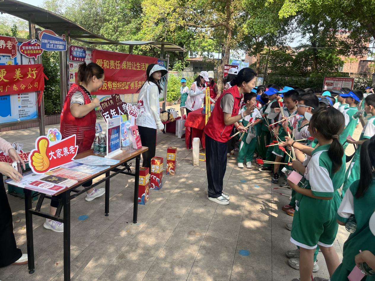 活動(dòng)當(dāng)日,文崗小學(xué)的同學(xué)們熱情洋溢,校園內(nèi)充滿歡聲笑語(yǔ)。在操場(chǎng)上,同學(xué)們被宣傳員精心設(shè)置的投壺、小氣槍等游戲吸引。這些游戲巧妙地融入了保險(xiǎn)知識(shí)元素,同學(xué)們?cè)趨⑴c游戲的過(guò)程中,不僅收獲了快樂(lè),還輕松學(xué)到了保險(xiǎn)的基本概念、作用以及風(fēng)險(xiǎn)防范知識(shí)。